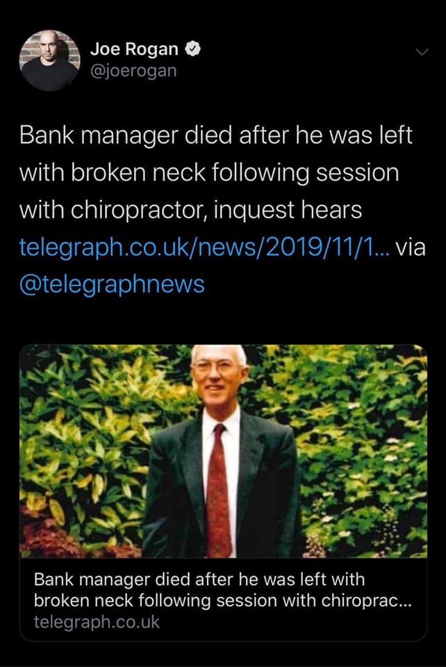 No less than three people posted this same article from South Korea (Where only the Equivalent of Medical Doctors can perform spinal manipulation) “A Case of Posterior Inferior Cerebellar Artery Infarction after Cervical Chiropractic Manipulation.” I will make the conclusion easy: Someone had an arterial dissection diagnosed 2 weeks after visiting a Chiropractor.